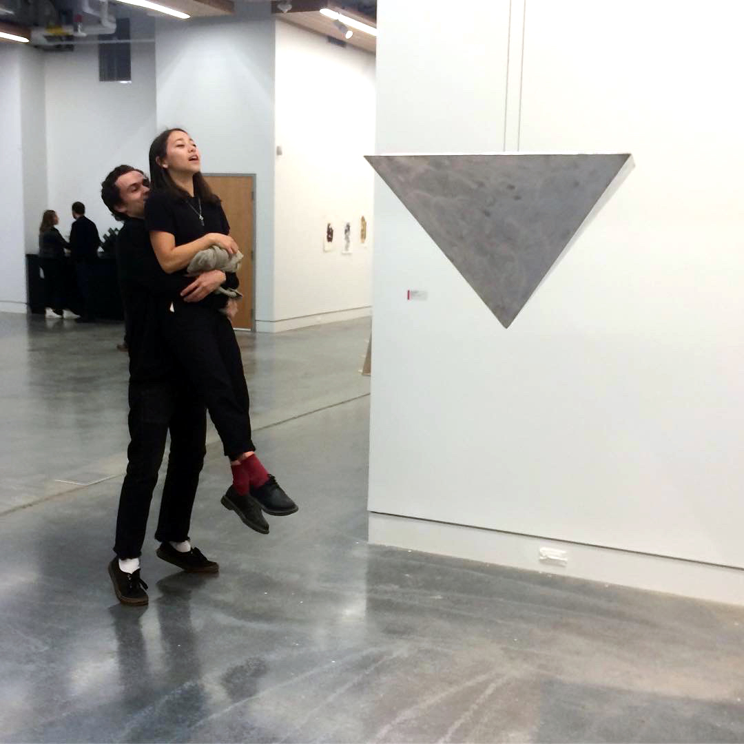 “Eye Level aims to reflect on sculptural presence in space and the role of authorship in an installation setting as the work is set at my personal eye level. What does it mean to meet someone at “eye level” and is this a utopian relationship goal ?”