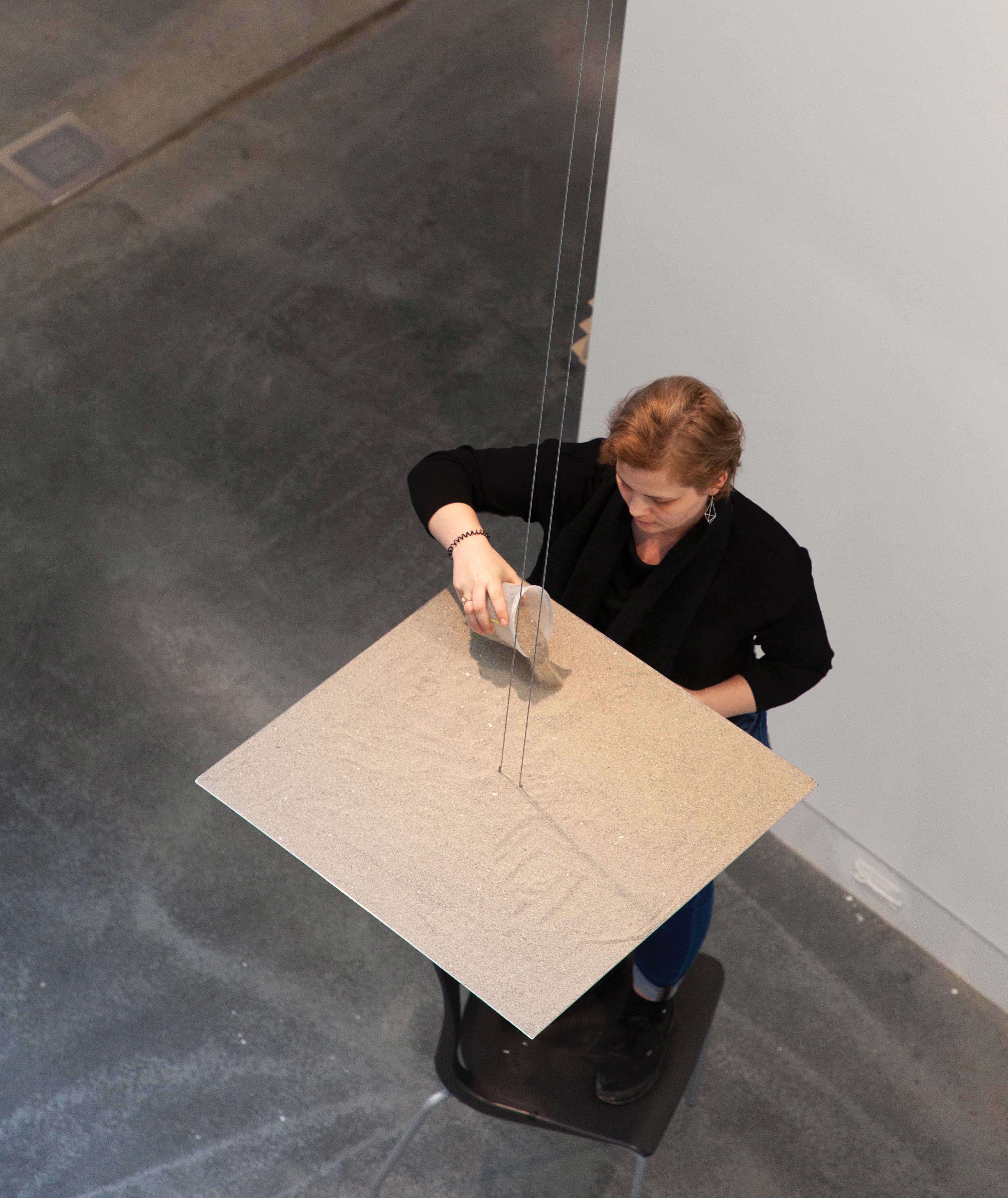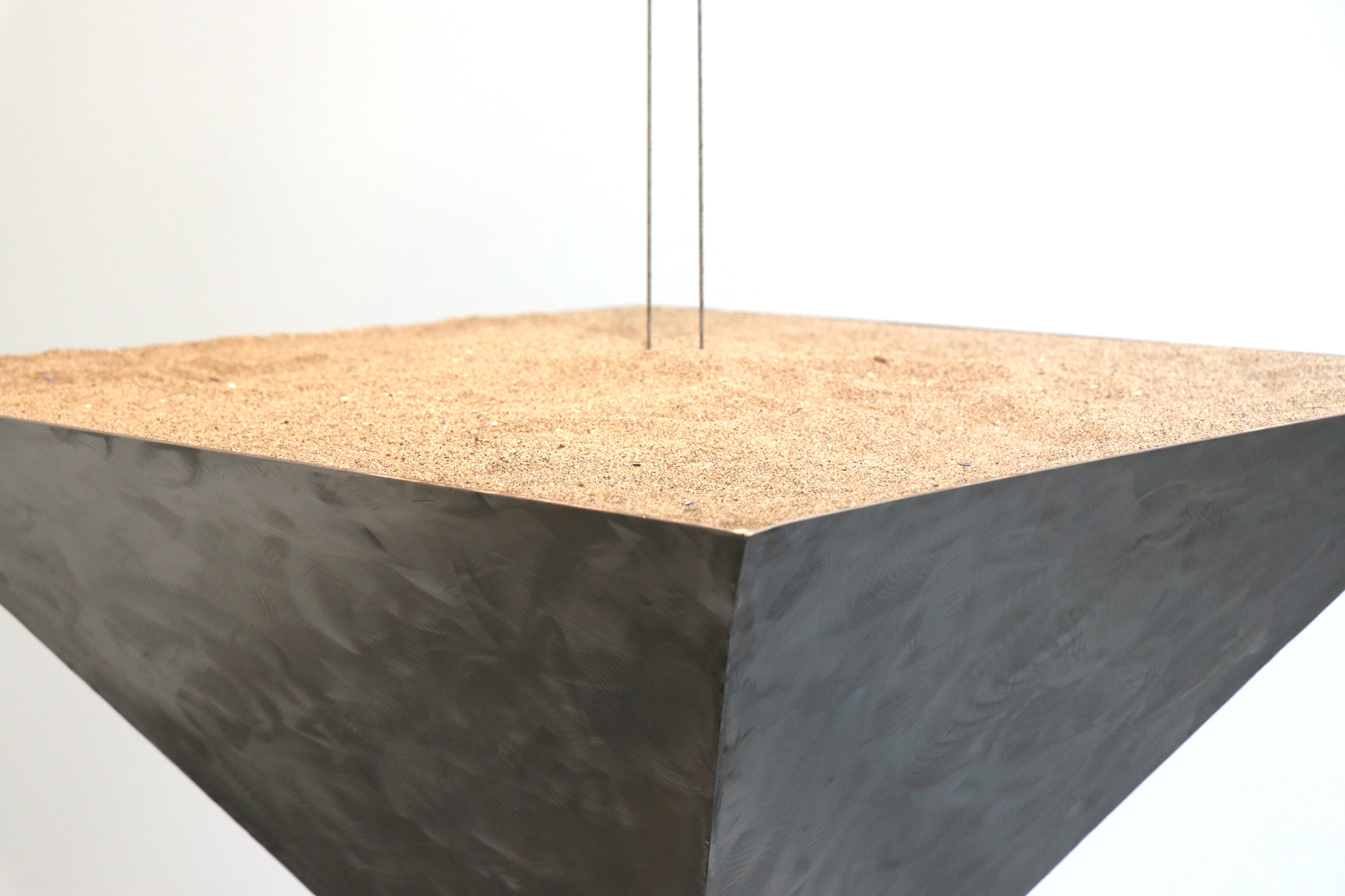 Eye Level/ Augenhöhe, 2019, sheet metal, wire and sand, Installed at the eye level of the artist, Michael O’Brien Exhibition Commons.