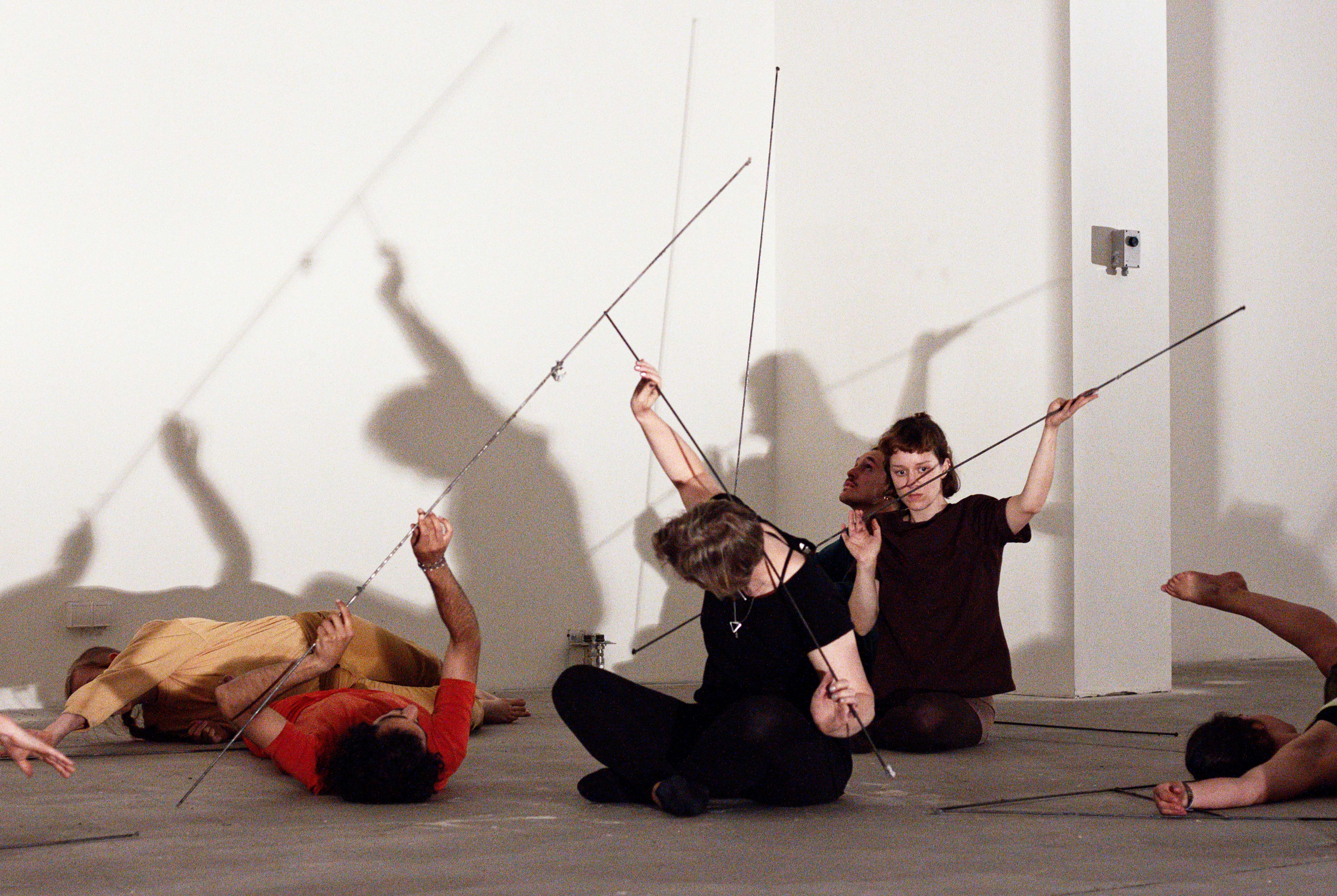 “We are an open group that actively engages with acute situations in space, interactions between people, and the complexity that results when both fields meet. We use this field of problems and options as fertile ground for a performative approach, based on sequences of movement which unfold in space. In the summer of 2018 we had the opportunity to use the Stephanie Kelly gallery in a takeover as a workspace, stage, a place for ideas and a retreat. Additionally, we used the location for interventions, workshops and cooperations.”